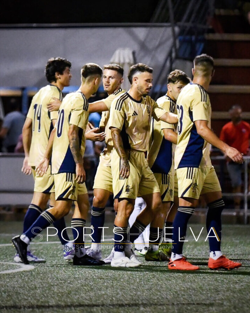 Jugadores del Decano celebran un gol durante un partido amistoso de pretemporada / Fran Sánchez / SportsHuelva