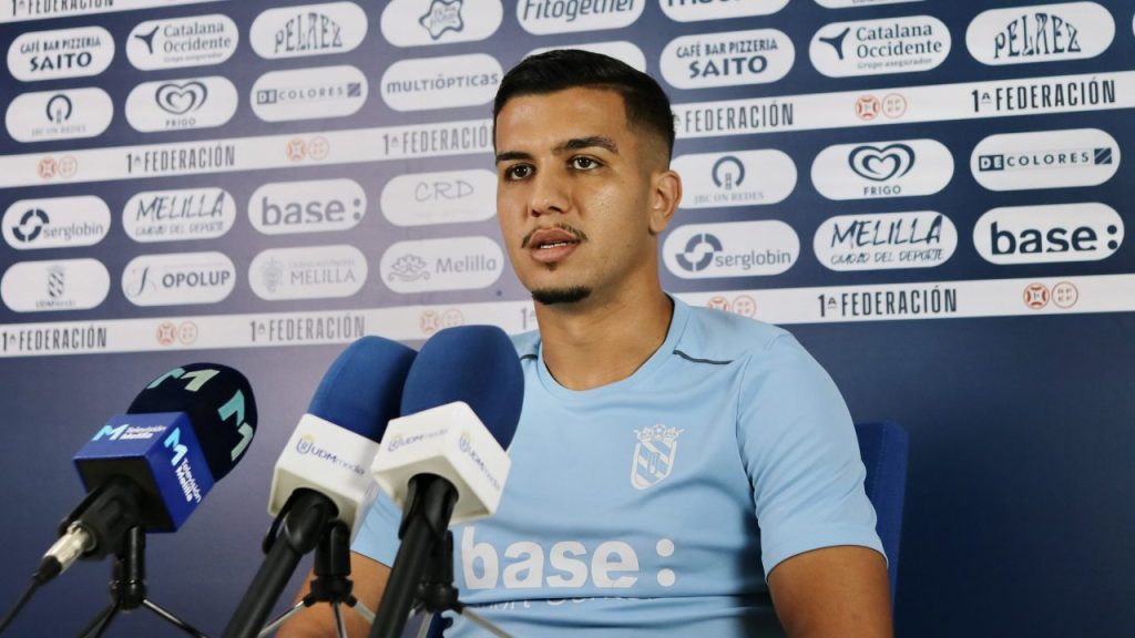 El jugador marroquí de la Unión Deportiva Melilla, Ousama Siddiki, pasó por la sala de prensa del Álvarez Claro